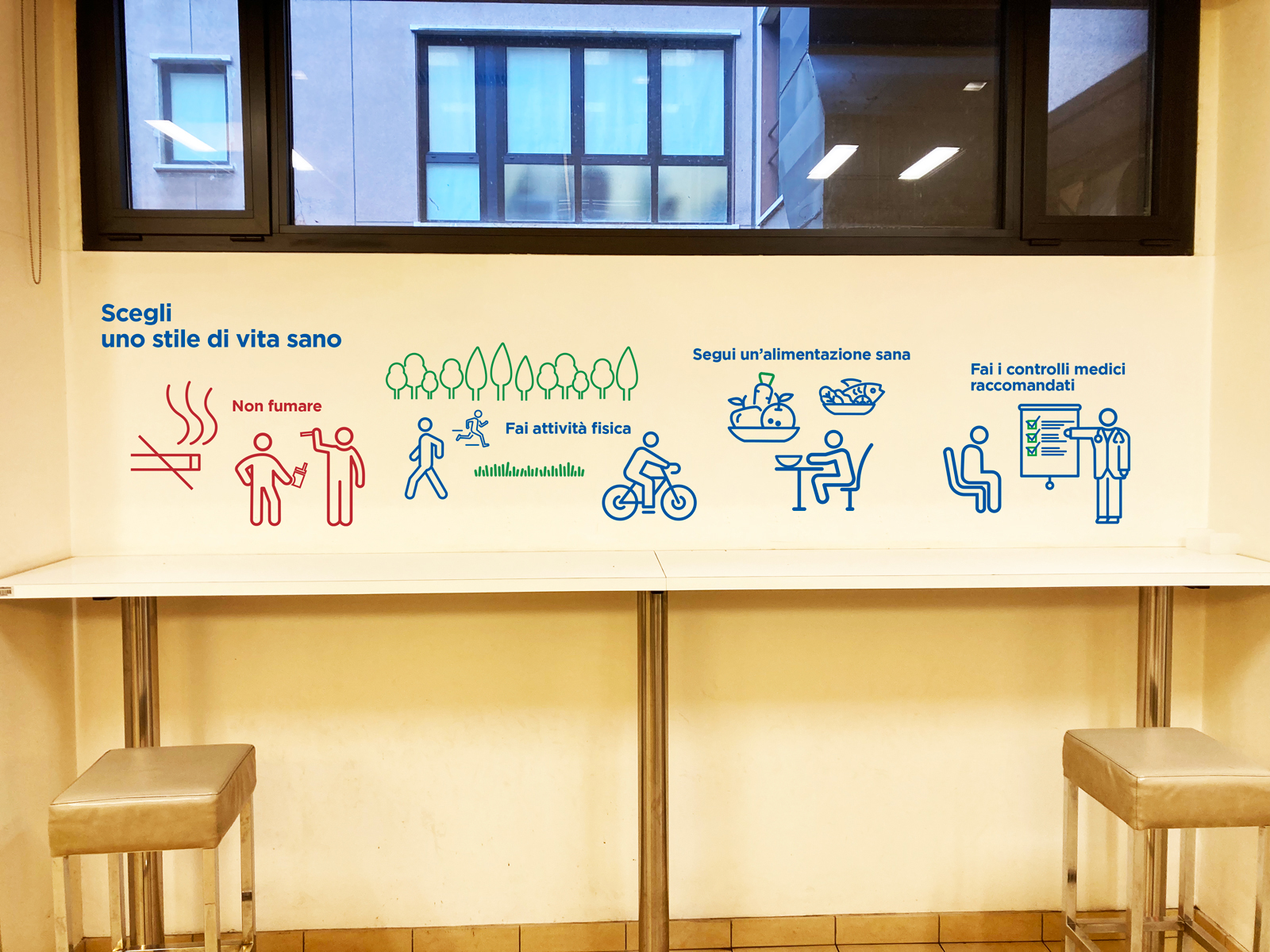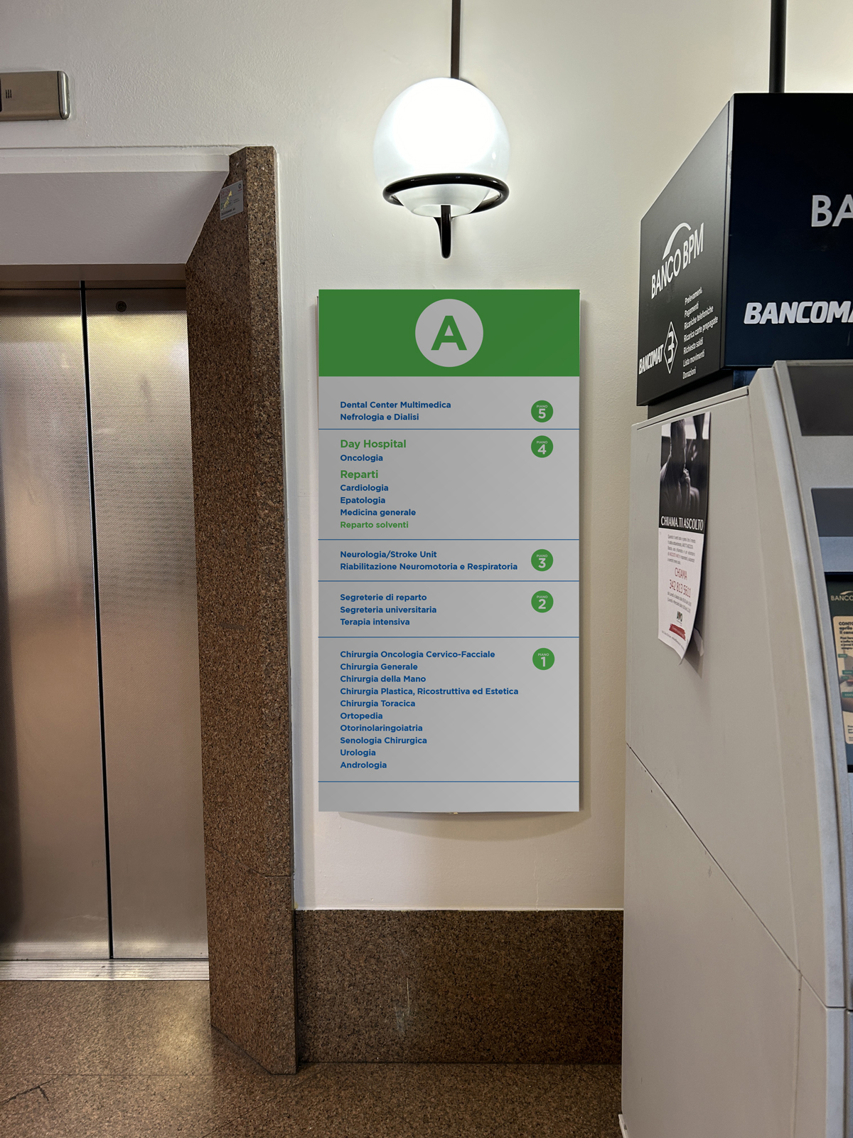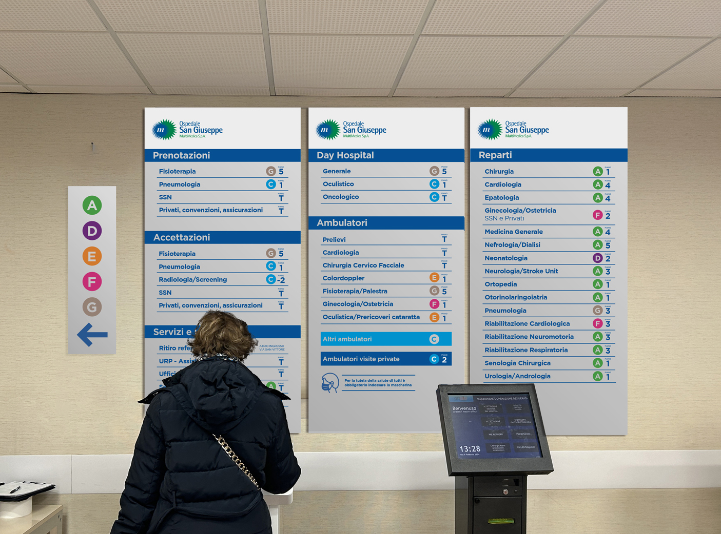 Wayfinding Multimedica San Giuseppe Milano Progettazione e realizzazione grafica percorsi di wayfinding per l'Ospedale san Giuseppe